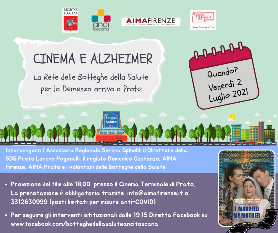 Venerdì 2 Luglio dalle h 19.15 le operatrici delle BdS AIMA insieme alle Istituzioni si confronteranno con il regista Domenico Costanzo, il quale, ha raccontato in chiave autobiografica attraverso il film “Ho sposato mia madre” la propria esperienza con la madre affetta da Demenza.